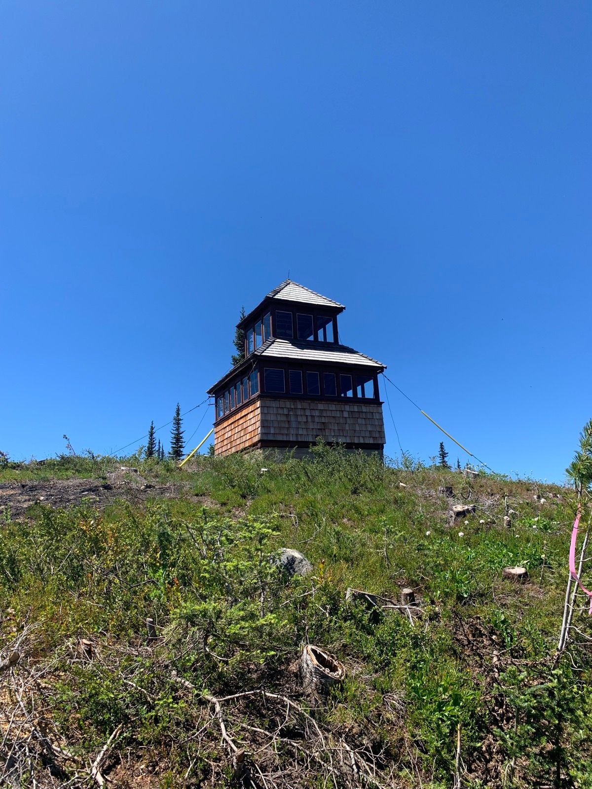 Windy Joe is a cool old fire lookout station on top of a hill. It was a nice hike, but there are many, many logs across the paths and navigating them with a backpack is a challenge. It was also hot hitting 35c around midday according to our thermometer.