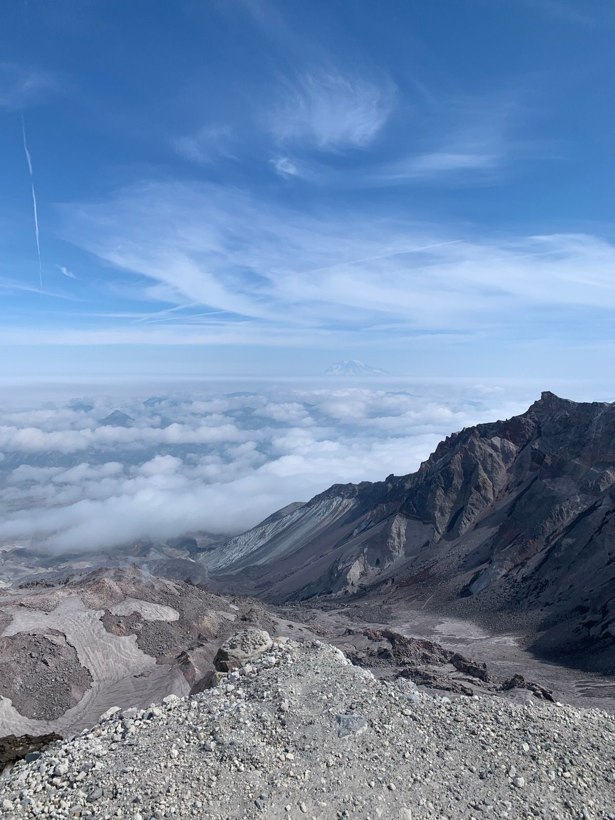 After an hour of that you hit a steep boulder field full of lava rock. It's a real maze with no clear path so you just have to figure it out up the steep path. After an hour of that you've got the final leg which mostly ash and gravel. The last couple of hundred metres is so hard, one step forward, half a step back.