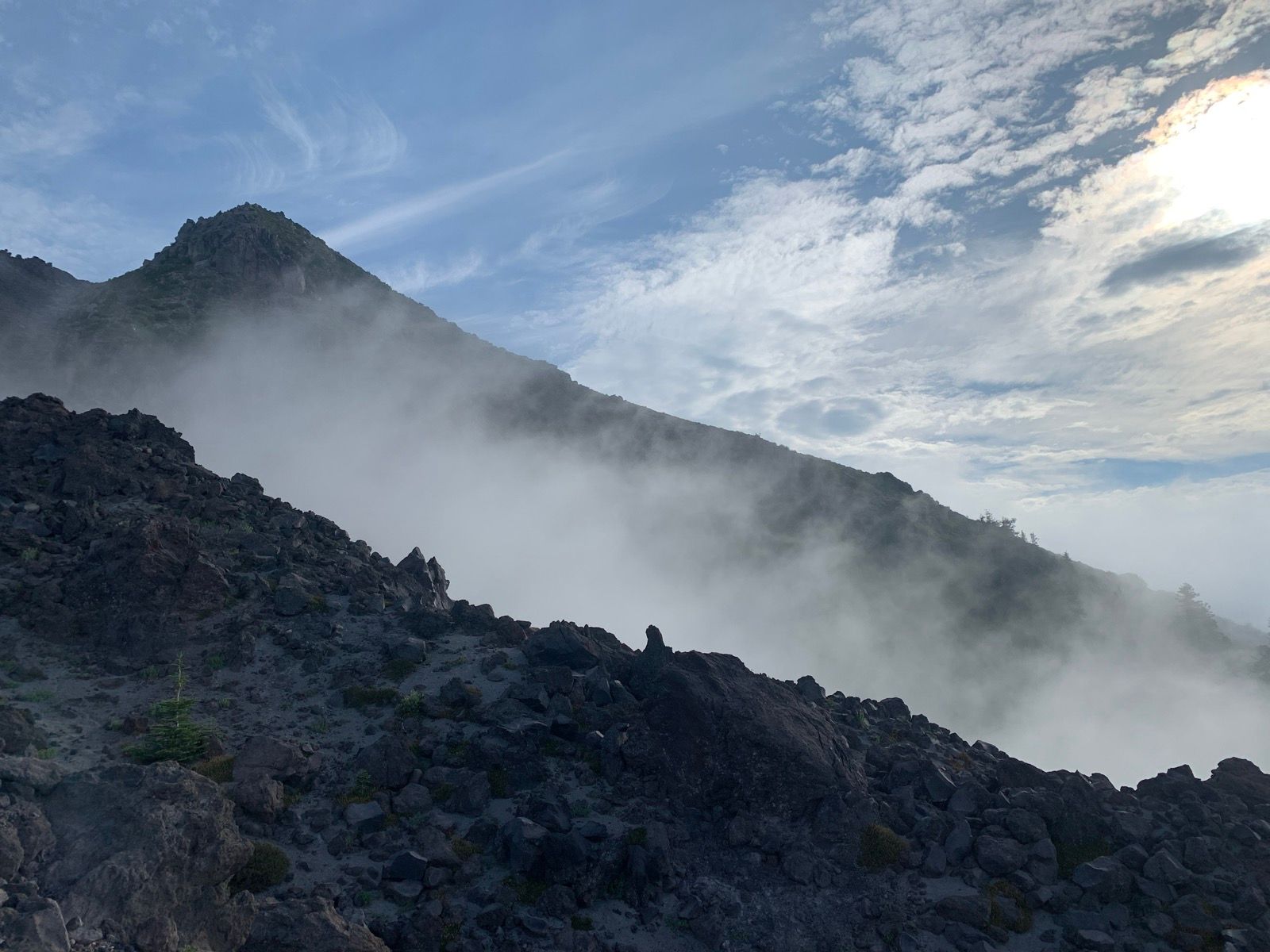 The first hour is in trees and is nice. Then it opens up onto the volcano and you climb up a ridge basically to the top. The defining features of this hike are lava rocks and ash. There are many trails up the ridge, you aim for posts that have been erected, but generally want to avoid being too close to them as that's the hardest route sometimes.