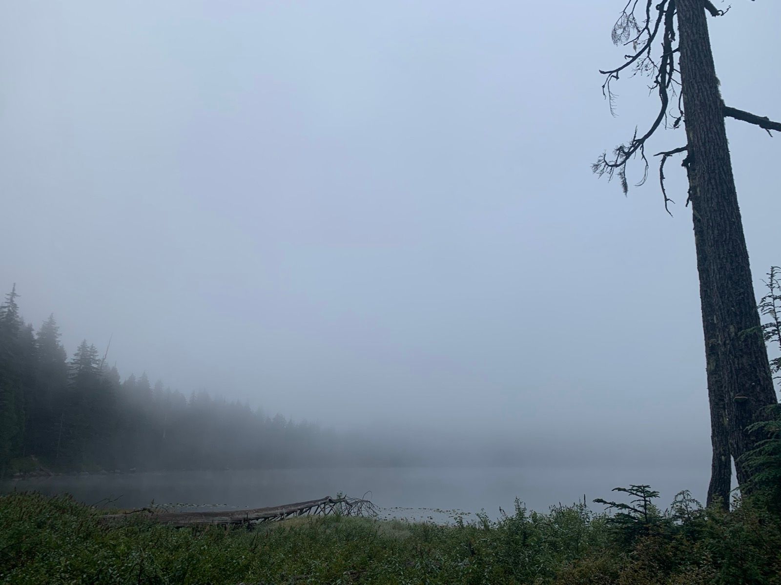 It was an overcast day and heading up from Deep Cove I went from patchy sun, into deep cloud, into sun, into deep cloud and ended up at an overcast remote lake. I've all but the last 5km or so of this trail before and knew what to expect, until I hit that last 5km.